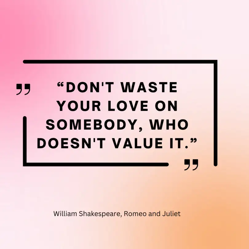 - “Parting is such sweet sorrow.” Juliet feels sad to say goodbye to Romeo but happy knowing they will meet again. Shakespeare connects love and longing, showing how separation can be both painful and beautiful. The line captures the deep emotions of young romance.