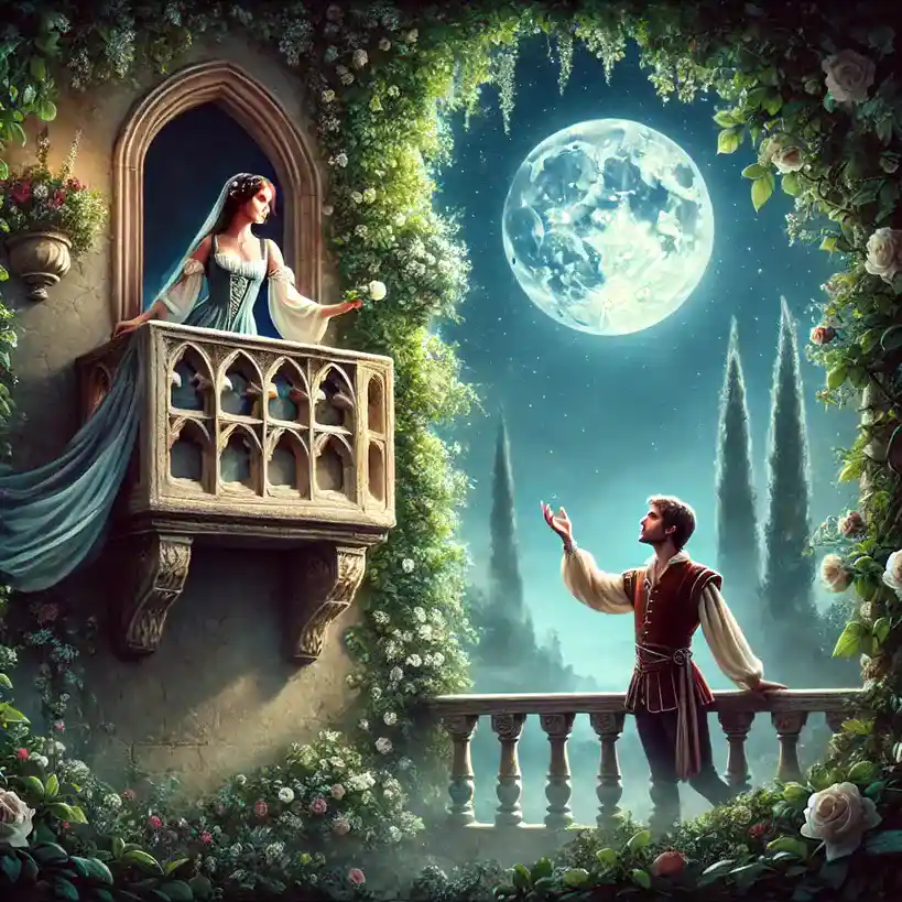 Romeo’s words are equally poetic. He compares Juliet to the sun, saying, “With love’s light wings did I o’erperch these walls.” His love makes him fearless. He doesn’t care about danger or the feud—he only sees Juliet. His language is full of exaggeration and passion, showing how deeply he feels.