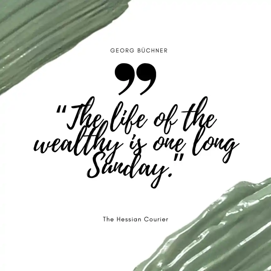 - “Peace to the huts! War on the palaces!” Büchner’s most famous line condenses his politics into a battle cry. It demands justice, not charity.
