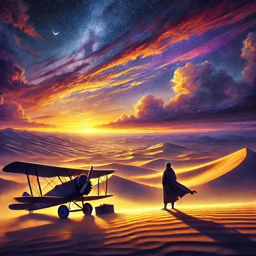 - The Desert: The desert is more than a backdrop; it becomes a character in its own right. Its silence is absolute, its beauty stark, its dangers constant. The desert teaches Saint-Exupéry humility and respect for nature’s power. In its vast emptiness, he finds both terror and transcendence. The desert strips life down to its essentials—water, shelter, companionship—and in doing so, reveals what truly matters.