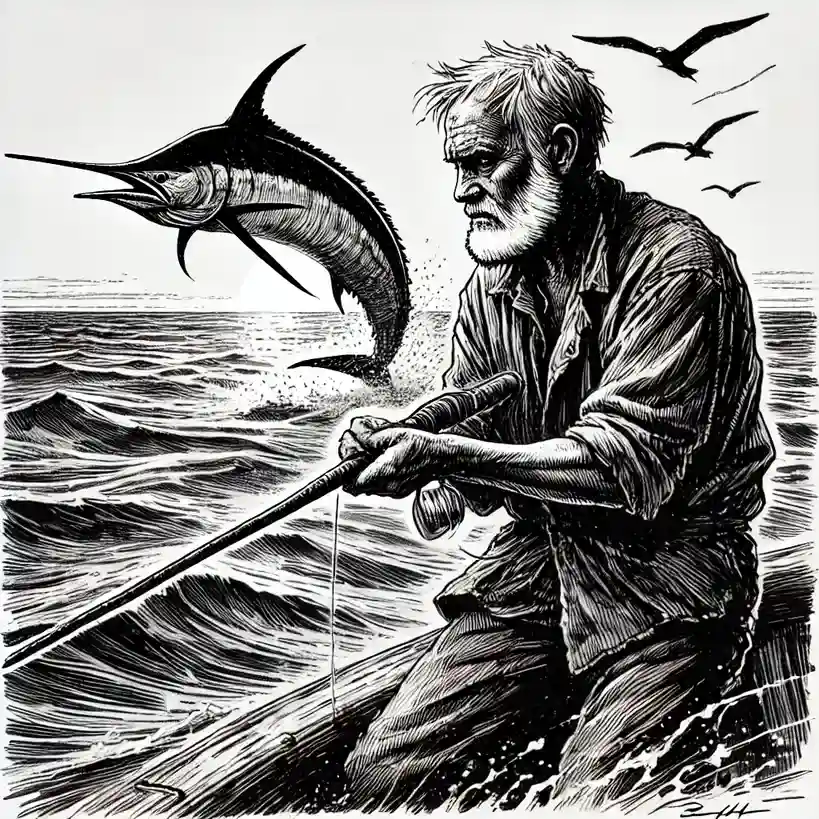 Während Santiago sich der Weite und Unberechenbarkeit des Ozeans stellt, wird er in einen unerbittlichen Kampf mit einem kolossalen Marlin verwickelt. Dieser Kampf bringt ihn an die Grenzen seiner körperlichen und geistigen Belastbarkeit. Seine meisterhafte Schilderung von Santiagos einsamer Reise fängt das Wesen des menschlichen Geistes ein. Sie hebt den unbezwingbaren Willen zur Überwindung von Widrigkeiten und das Streben nach persönlichem Triumph hervor.